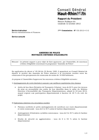 Le présent rapport a pour objet de faire approuver, par l'Assemblée, de nouveaux critères d'éligibilité concernant le programme "Amendes de Police".