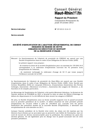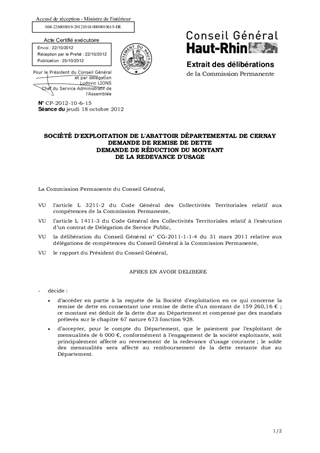 SOCIÉTÉ D'EXPLOITATION DE L'ABATTOIR DÉPARTEMENTAL DE CERNAY DEMANDE DE REMISE DE DETTE DEMANDE DE RÉDUCTION DU MONTANT DE LA REDEVANCE D'USAGE