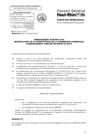 AMENAGEMENT FONCIER C442 MODIFICATION DE LA CONSTITUTION DE LA COMMISSION COMMUNALE D'AMENAGEMENT FONCIER DE SOPPE LE HAUT