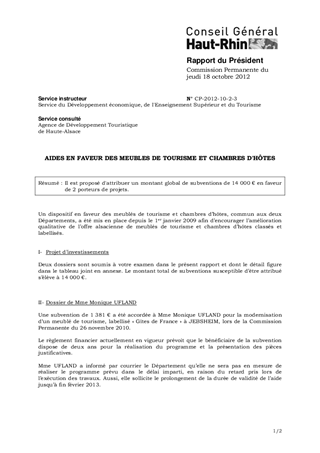 AIDES EN FAVEUR DES MEUBLES DE TOURISME ET CHAMBRES D'HÔTES