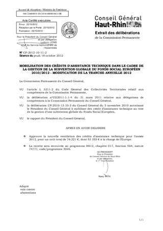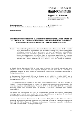 MOBILISATION DES CRÉDITS D'ASSISTANCE TECHNIQUE DANS LE CADRE DE LA GESTION DE LA SUBVENTION GLOBALE DU FONDS SOCIAL EUROPÉEN 2010/2012 - MODIFICATION DE LA TRANCHE ANNUELLE 2012