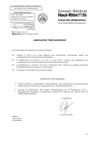 Dans le cadre du présent rapport, il est proposé d'allouer à l'Association "Prix Bartholdi" une subvention de fonctionnement maximale de 6 638 € pour l'organisation du "Prix Bartholdi 2012".