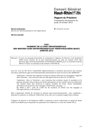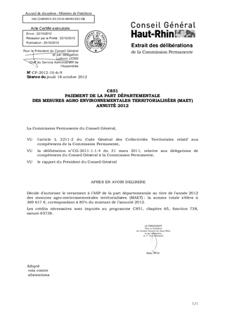 C851 PAIEMENT DE LA PART DÉPARTEMENTALE DES MESURES AGRO ENVIRONNEMENTALES TERRITORIALISÉES (MAET) ANNUITÉ 2012