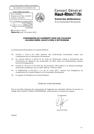 CONCESSIONS DE LOGEMENT DANS LES COLLEGES COLLÈGE IRÈNE JOLIOT-CURIE À WITTENHEIM