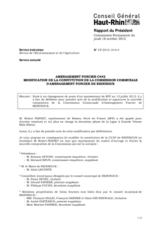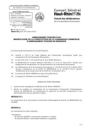 AMENAGEMENT FONCIER C442 MODIFICATION DE LA CONSTITUTION DE LA COMMISSION COMMUNALE D'AMENAGEMENT FONCIER DE REININGUE