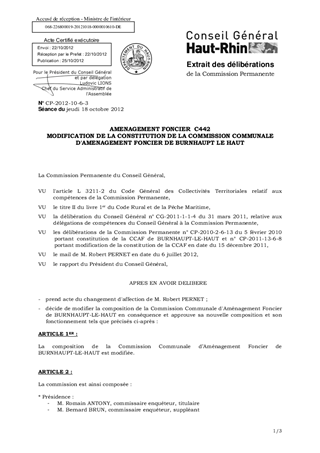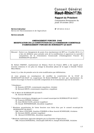 AMENAGEMENT FONCIER C442 MODIFICATION DE LA CONSTITUTION DE LA COMMISSION COMMUNALE D'AMENAGEMENT FONCIER DE BURNHAUPT LE HAUT