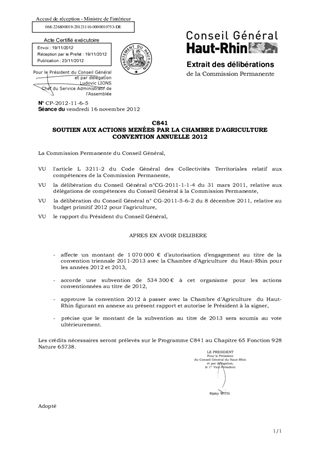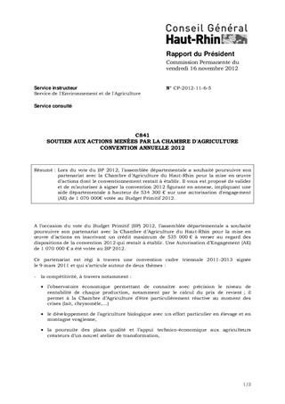 C841 SOUTIEN AUX ACTIONS MENÉES PAR LA CHAMBRE D'AGRICULTURE CONVENTION ANNUELLE 2012
