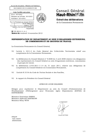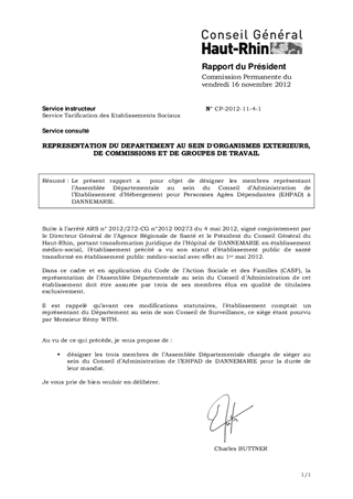 Le présent rapport a pour objet de désigner les membres représentant l’Assemblée Départementale au sein du Conseil d’Administration de l’Etablissement d’Hébergement pour Personnes Agées Dépendantes (EHPAD) à DANNEMARIE.