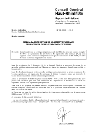 AIDES A LA PRODUCTION DE LOGEMENTS FAMILIAUX TRES SOCIAUX DANS LE PARC LOCATIF PUBLIC