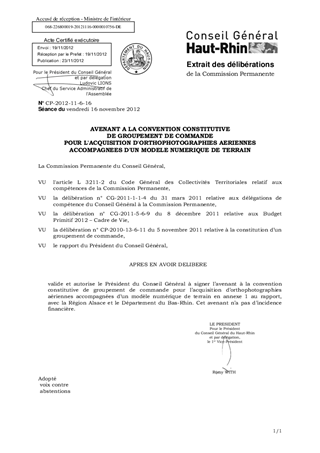 AVENANT A LA CONVENTION CONSTITUTIVE DE GROUPEMENT DE COMMANDE POUR L'ACQUISITION D'ORTHOPHOTOGRAPHIES AERIENNES ACCOMPAGNEES D'UN MODELE NUMERIQUE DE TERRAIN