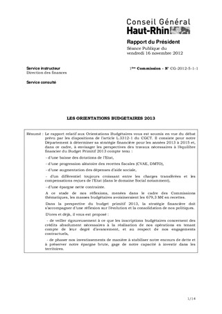 LES ORIENTATIONS BUDGETAIRES 2013