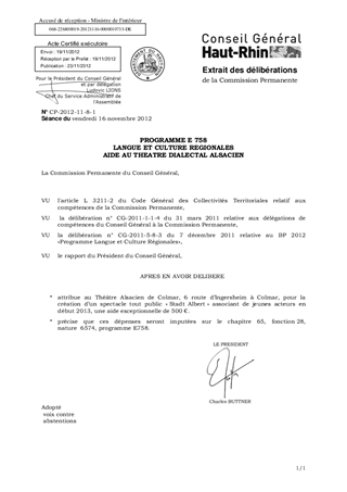 PROGRAMME E 758 LANGUE ET CULTURE REGIONALES AIDE AU THEATRE DIALECTAL ALSACIEN