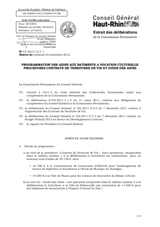 PROGRAMMATION DES AIDES AUX BATIMENTS A VOCATION CULTURELLE PROCEDURES CONTRATS DE TERRITOIRE DE VIE ET GUIDE DES AIDES