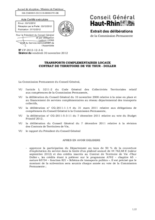 TRANSPORTS COMPLEMENTAIRES LOCAUX CONTRAT DE TERRITOIRE DE VIE THUR - DOLLER
