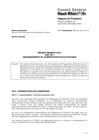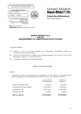 BUDGET PRIMITIF 2013 EAU C01 ASSAINISSEMENT ET ALIMENTATION EN EAU POTABLE