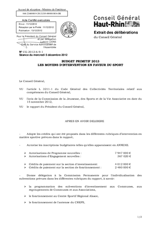 BUDGET PRIMITIF 2013 LES MOYENS D'INTERVENTION EN FAVEUR DU SPORT
