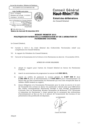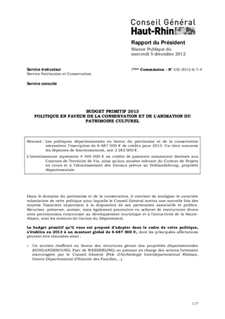 BUDGET PRIMITIF 2013 POLITIQUE EN FAVEUR DE LA CONSERVATION ET DE L'ANIMATION DU PATRIMOINE CULTUREL