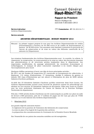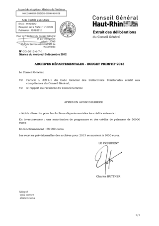 ARCHIVES DÉPARTEMENTALES - BUDGET PRIMITIF 2013