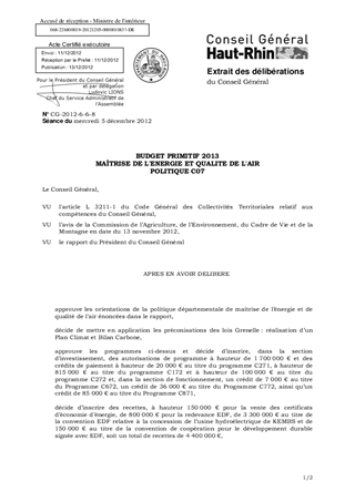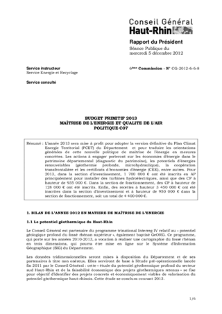 BUDGET PRIMITIF 2013 MAÎTRISE DE L'ENERGIE ET QUALITE DE L'AIR POLITIQUE C07