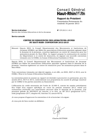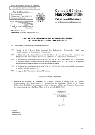 CENTRE DE RESSOURCES DES ANIMATEURS-JEUNES DU HAUT-RHIN: CONVENTION 2013-2015