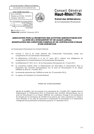 ASSOCIATION POUR LA PROMOTION DES ACTIVITES AERONAUTIQUES SUR LA ZONE DE L'EUROAIRPORT ET EN ALSACE (APRAA) MODIFICATION DES CONDITIONS D'EMPLOI ET DE JUSTIFICATION D'USAGE D'UNE SUBVENTION