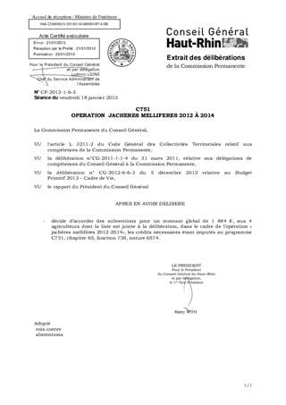 C751 OPERATION JACHERES MELLIFERES 2012 À 2014