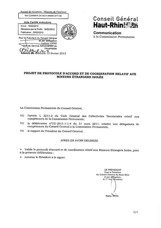 Le présent rapport a pour objet de vous présenter pour validation le projet de protocole entre le Département du Haut-Rhin et les services de l'Etat (Préfecture, Office Français de l'Immigration et de l'Intégration, Protection Judiciaire de la Jeunesse, magistrats (Parquets et Juges des Tutelles) et Police de l'Air et des Frontières) sur la coordination relative à l'accueil des Mineurs Etrangers Isolés (MIE).