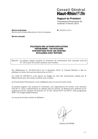 Le présent rapport propose le versement de subventions d’un montant total de 47 155 € pour les sorties scolaires avec nuitées.