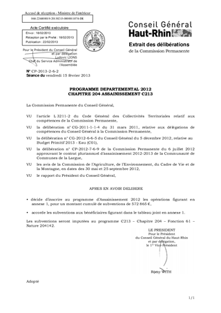 PROGRAMME DEPARTEMENTAL 2012 CHAPITRE 204 ASSAINISSEMENT C213