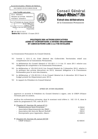 Le rapport a pour objet l'attribution d'aides et de subventions à divers organismes et associations liés à la vie scolaire, en 2013. Le montant total proposé est égal à 102 131 €.