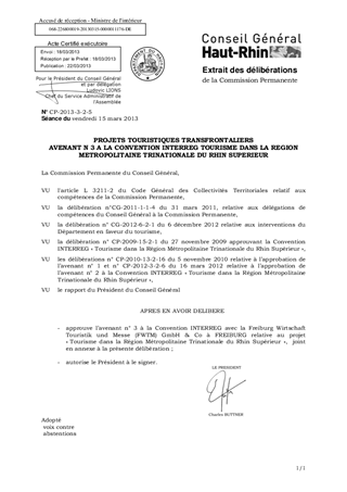 Il vous est proposé de valider l'avenant n°3 à la Convention INTERREG "Tourisme dans la Région Métropolitaine Trinationale du Rhin Supérieur" destiné à prolonger de six mois le projet.