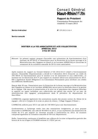 SOUTIEN A LA VIE ASSOCIATIVE ET AUX COLLECTIVITES APRECIAL 2013 C732 ET C632