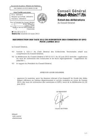 RECONDUCTION DES TAUX 2012 DE SUBVENTION DES COMMUNES ET EPCI POUR L'ANNEE 2013