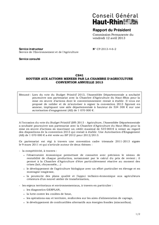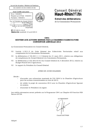 C841 SOUTIEN AUX ACTIONS MENEES PAR LA CHAMBRE D'AGRICULTURE CONVENTION ANNUELLE 2013