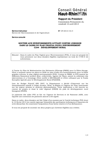 SOUTIEN AUX INVESTISSEMENTS LUTTANT CONTRE L'EROSION DANS LE CADRE DU PLAN VEGETAL POUR L'ENVIRONNEMENT C244 DEVELOPPEMENT RURAL