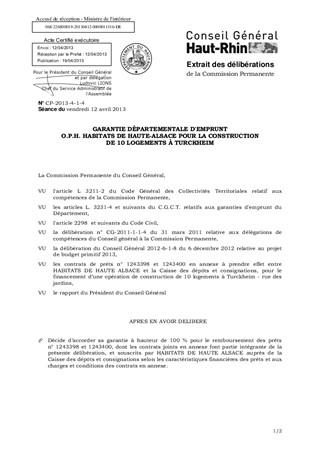 GARANTIE DÉPARTEMENTALE D'EMPRUNT O.P.H. HABITATS DE HAUTE-ALSACE POUR LA CONSTRUCTION DE 10 LOGEMENTS À TURCKHEIM