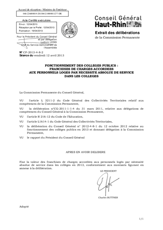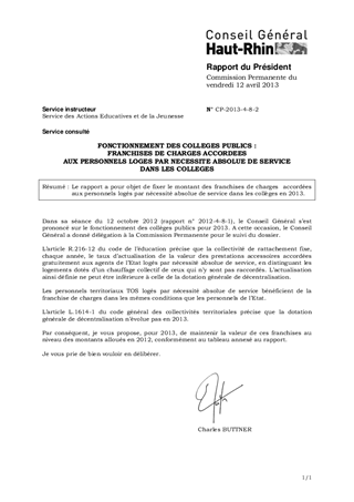 Le rapport a pour objet de fixer le montant des franchises de charges accordées aux personnels logés par nécessité absolue de service dans les collèges en 2013.