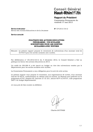 Le présent rapport propose le versement de subventions d’un montant total de 52 953 € pour les sorties scolaires avec nuitées.