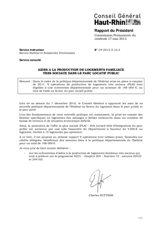 AIDES A LA PRODUCTION DE LOGEMENTS FAMILIAUX TRES SOCIAUX DANS LE PARC LOCATIF PUBLIC