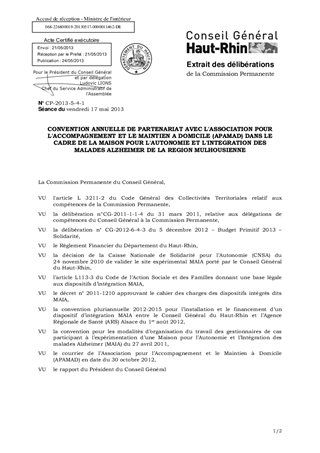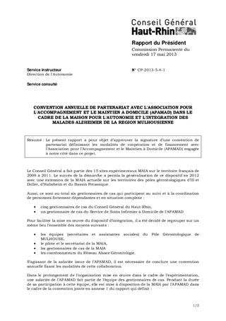 CONVENTION ANNUELLE DE PARTENARIAT AVEC L'ASSOCIATION POUR L'ACCOMPAGNEMENT ET LE MAINTIEN A DOMICILE (APAMAD) DANS LE CADRE DE LA MAISON POUR L'AUTONOMIE ET L'INTEGRATION DES MALADES ALZHEIMER DE LA REGION MULHOUSIENNE