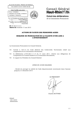 Le présent rapport a pour objet, en application du règlement financier départemental, de décider de la prorogation de la durée de validité d’une aide à l’investissement dans le cadre des actions en faveur des personnes âgées.