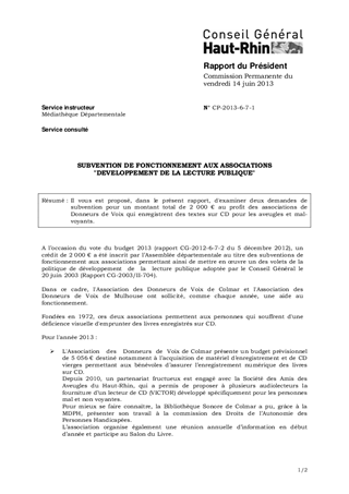 Il vous est proposé, dans le présent rapport, d'examiner deux demandes de subvention pour un montant total de 2 000 € au profit des associations de Donneurs de Voix qui enregistrent des textes sur CD pour les aveugles et mal-voyants.