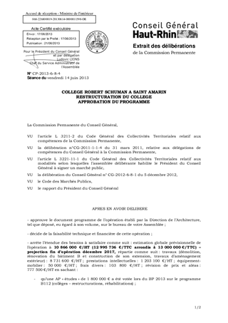 COLLEGE ROBERT SCHUMAN A SAINT AMARIN RESTRUCTURATION DU COLLEGE APPROBATION DU PROGRAMME