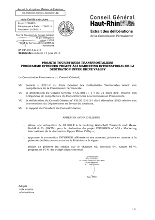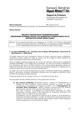 PROJETS TOURISTIQUES TRANSFRONTALIERS PROGRAMME INTERREG PROJET A33 MARKETING INTERNATIONAL DE LA DESTINATION UPPER RHINE VALLEY