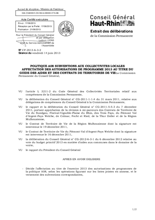POLITIQUE A08 SUBVENTIONS AUX COLLECTIVITES LOCALES AFFECTATION DES AUTORISATIONS DE PROGRAMME 2013 AU TITRE DU GUIDE DES AIDES ET DES CONTRATS DE TERRITOIRES DE VIE