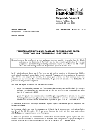 Au vu du nombre de projets qui pourraient ne pas être terminés dans les délais prévus par les Contrats de Territoire de Vie de première génération, il vous est proposé de permettre le paiement partiel des projets non achevés au 15 octobre 2014 à hauteur des justificatifs de paiement produits à cette date.