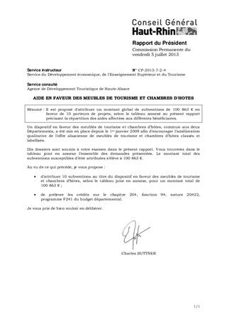 AIDE EN FAVEUR DES MEUBLES DE TOURISME ET CHAMBRES D'HOTES