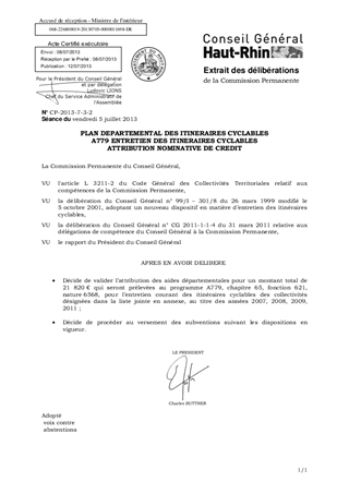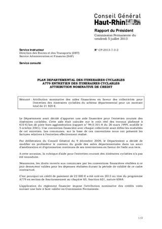 PLAN DEPARTEMENTAL DES ITINERAIRES CYCLABLES A779 ENTRETIEN DES ITINERAIRES CYCLABLES ATTRIBUTION NOMINATIVE DE CREDIT