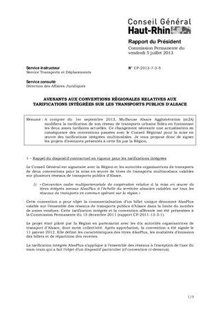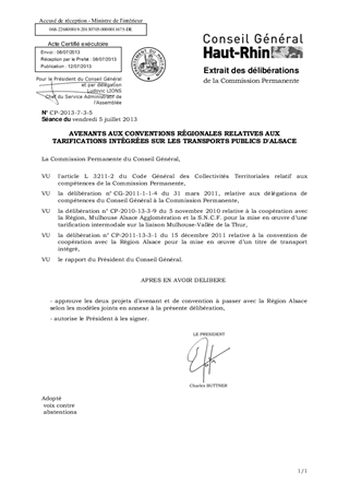 AVENANTS AUX CONVENTIONS RÉGIONALES RELATIVES AUX TARIFICATIONS INTÉGRÉES SUR LES TRANSPORTS PUBLICS D'ALSACE