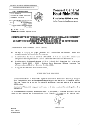 CONFINEMENT DES TERRES POLLUEES ISSUES DU CHENAL D'ECRETEMENT DES CRUES DE L'ILL A MULHOUSE CONVENTION DE MAITRISE D'OUVRAGE DESIGNEE ET DE FINANCEMENT AVEC RESEAU FERRE DE FRANCE